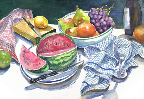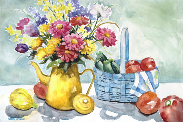 Zinnias & Fruit (14x9.5, Price: $95.00)
