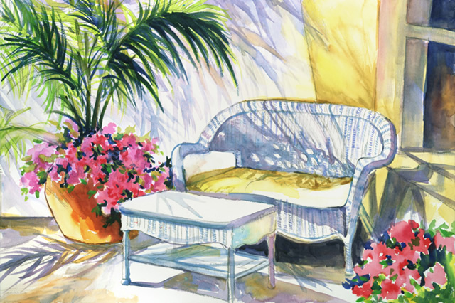 Adirondacks & Geraniums (14x9.75, Price: $85.00)